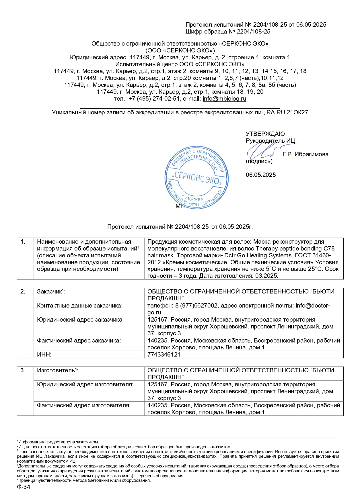 Вложимость в коробках (кол-во шт в 1 коробке): 20 Анонс: Супер ХИТ! код ТН ВЭД: 3305900009 Бренд: DctrGo Healing Systems Вес: 0,05 Производитель: ООО Бьюти продакшн Страна производитель: Россия Тип упаковки: Ваакумный диспенсер Сезон: Всесезонный продукт Год создания: 2024 Нишевая парфюмерия: Tiziana Terenzi Kirke Extrait de Parfum Название модели: Peptide Bonding 78 Класс опасности товара: не опасен Пол: унисекс Область использования: Москва Эффект: Молекулярное восстановление Тип волос: Для всех типов волос Единиц в одном товаре: 1 Условия хранения: от +5 до + 25 Способ применения: Нанести на влажные волосы после шампуня Срок годности: 36 мес - 2 отзыва к товару Несмываемая маска для восстановления волос после окрашивания и осветления Therapy peptide bonding C78 hair mask в Новом Уренгое